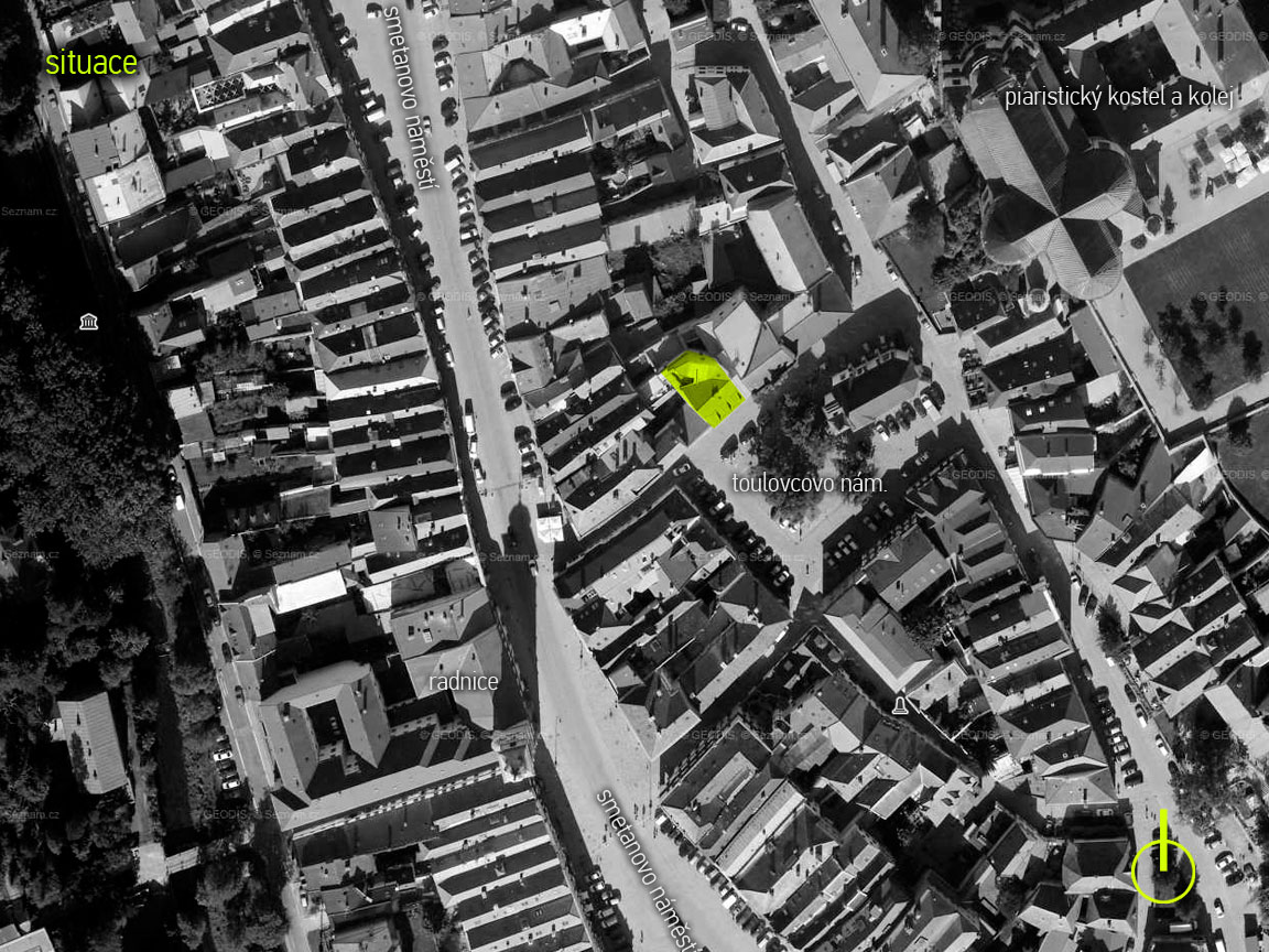 Poblíž litomyšlských klášterních zahrad  v domě z přelomu 19. a 20. století, prožil investor své dětství. Ač nyní žije s rodinou na okraji města, stále má k rodnému domu silný vztah, a proto se rozhodl jej opravit a nabídnout k bytovému pronájmu. Objekt se nachází v historické zástavbě, má nepravidelný půdorys a zcela vyplňuje pozemek na němž je postaven. Jednou stranou je orientován do náměstí, ostatní strany domu těsně sousedí s okolní zástavbou anebo přilehlými sousedními dvory. Dům má dvě nadzemní podlaží a podkroví.