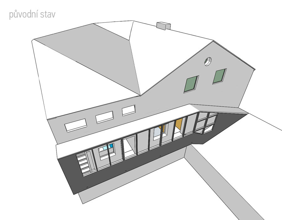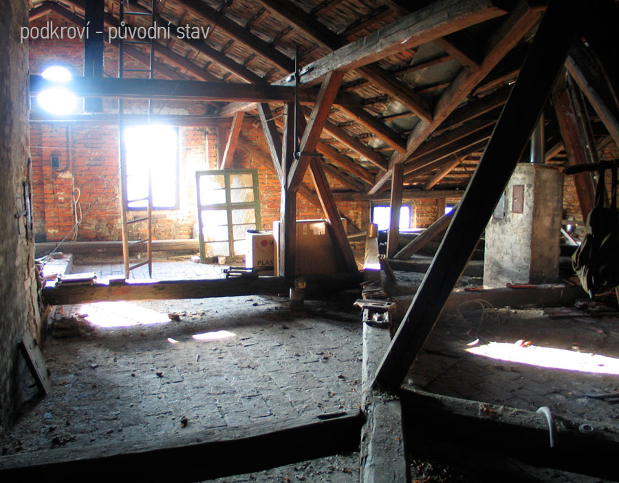 Hlavním záměrem investora bylo rozdělit byt v prvním patře na dvě obytné jednotky a třetí vystavět v podkroví. Původní byt využíval celou plochu patra, ale některé místnosti zde nebyly řádně přirozeně osvětleny ani využívány. Hlavní vstup do bytu se nacházel na pavlači jižní strany objektu. Nepravidelný půdorys domu se projevil také v konstrukci krovu. Směrem do ulice je sedlová střecha, naopak směrem do dvora se střecha láme po segmentech a vznikají tak tří úžlabí.