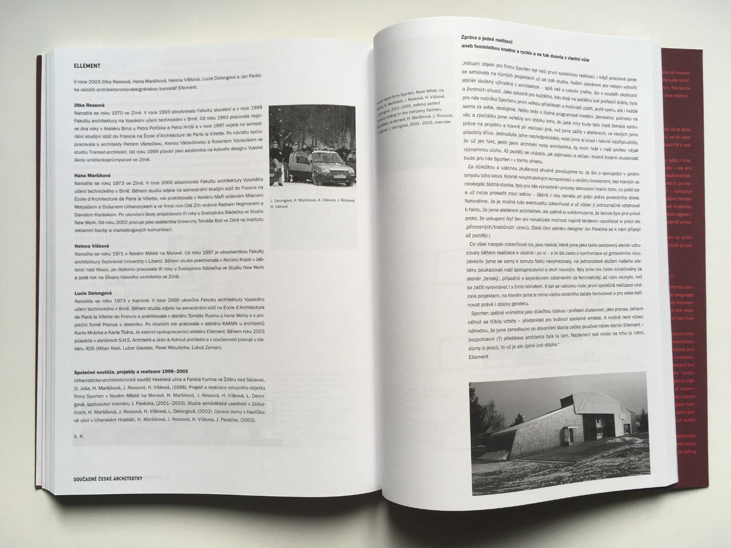 Stejnojmenná výstava proběhla 11.11. - 30.11. 2003 v galerii Nová síň v Praze. Projekt mapování československé ženské architektury je zaznamenán v katalogu, v rámci kterého členky tehdy začínající kanceláře ellement formulují otázky profesního života architektky.