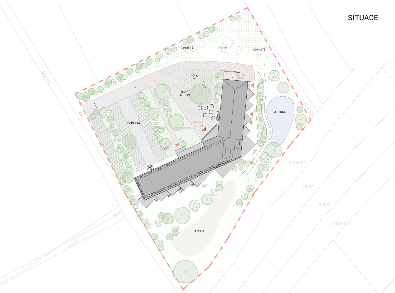 Reprezentativní vstup do objektu situujeme ve středové části objektu. Tam je