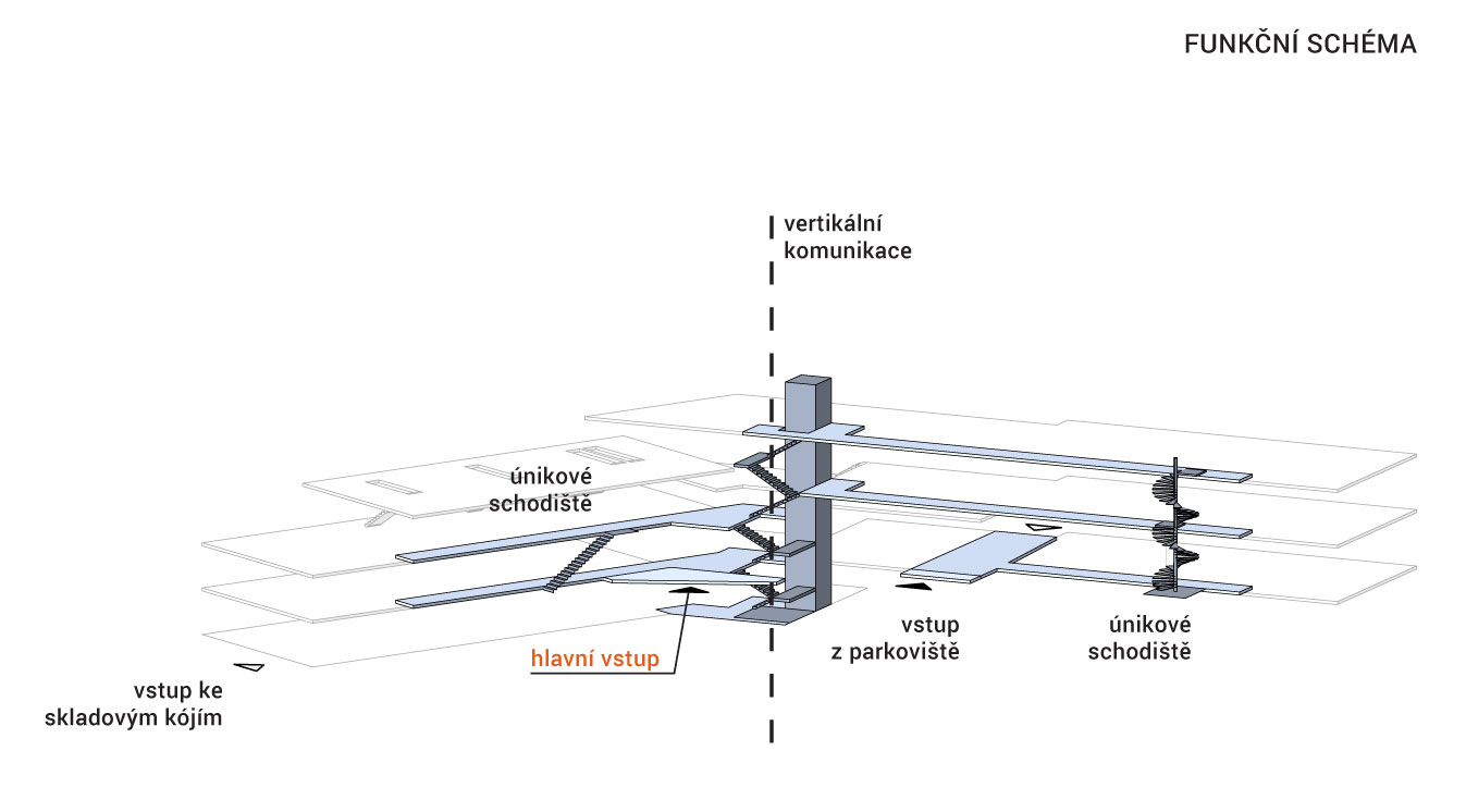 Obě křídla objektu propojujeme jak v rovině provozní, tak i prostorové.