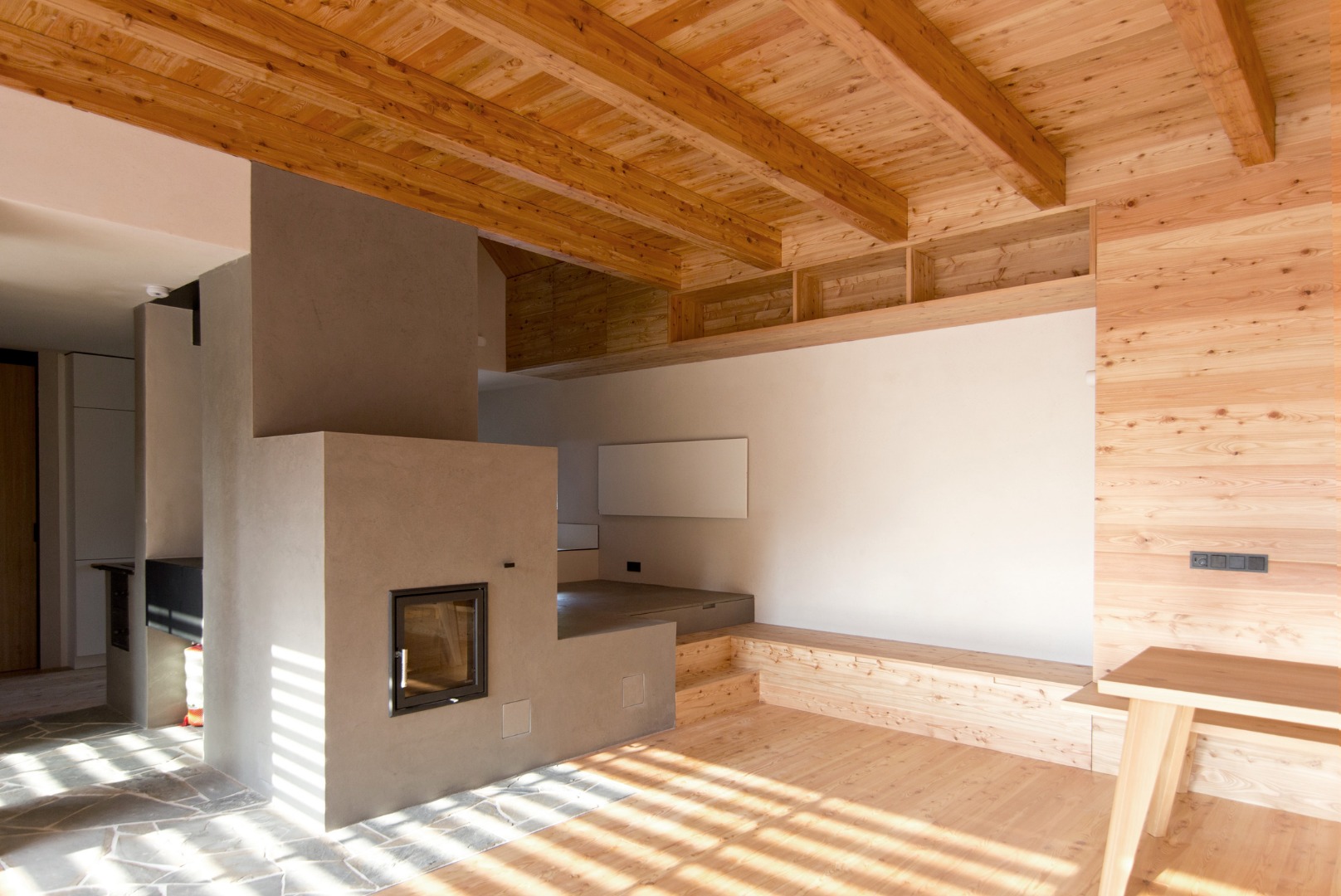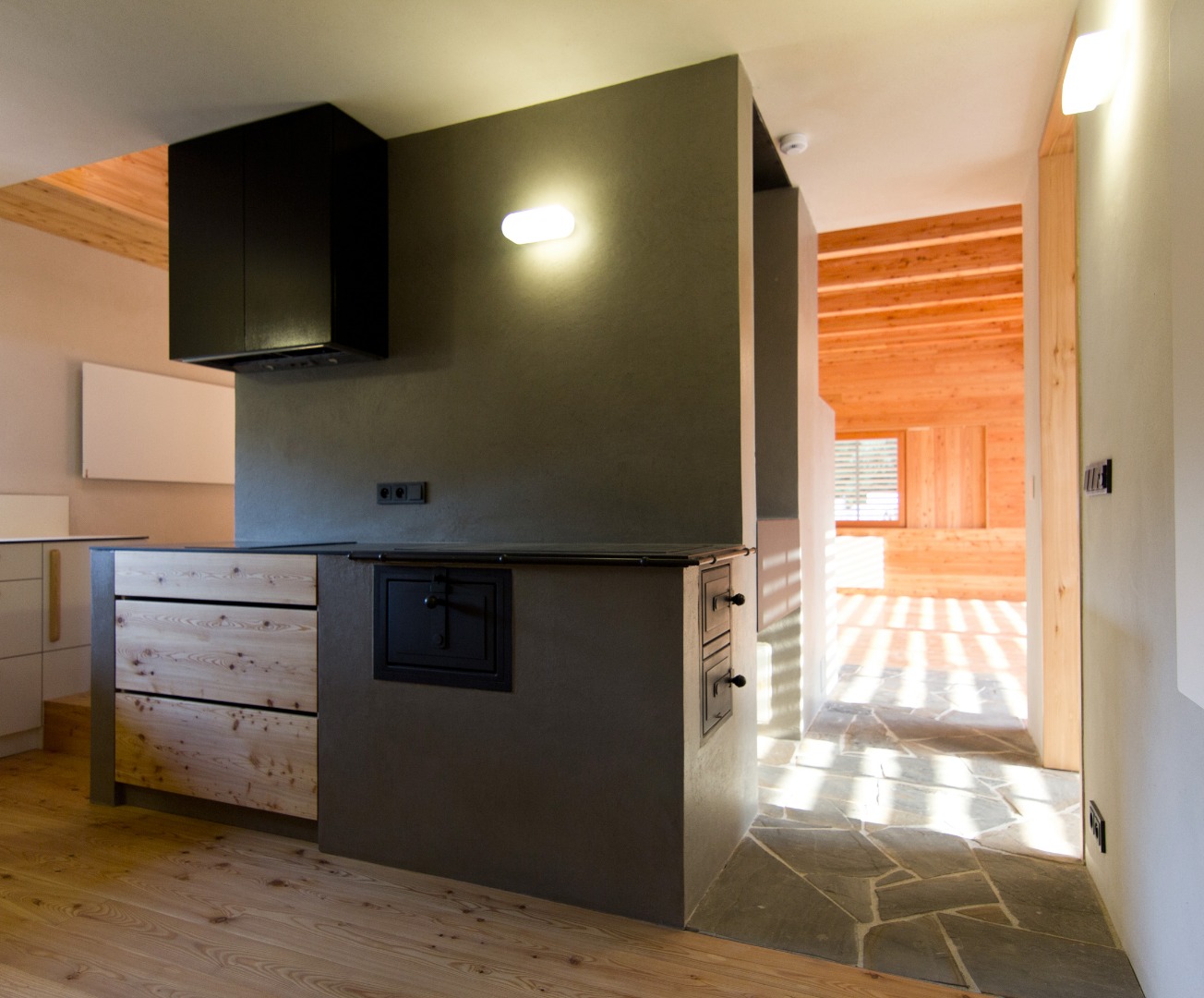 Realizace interiéru: Bega studio (truhlářské prvky), Jan Křivonožka (pecař)