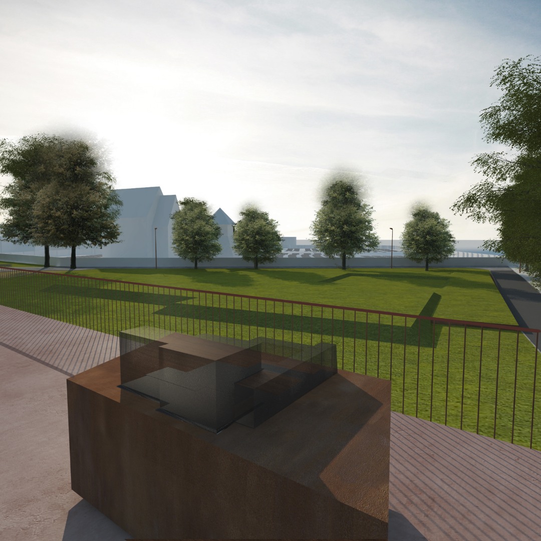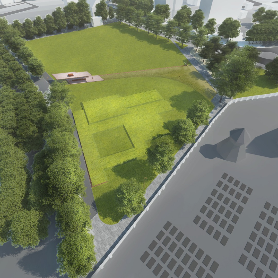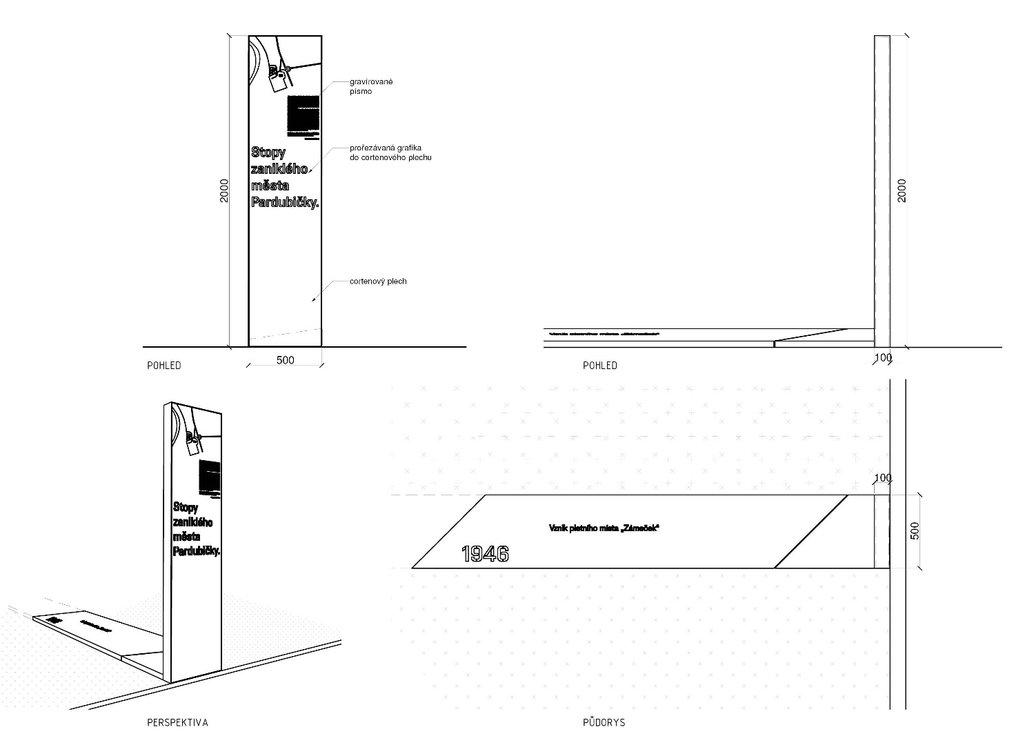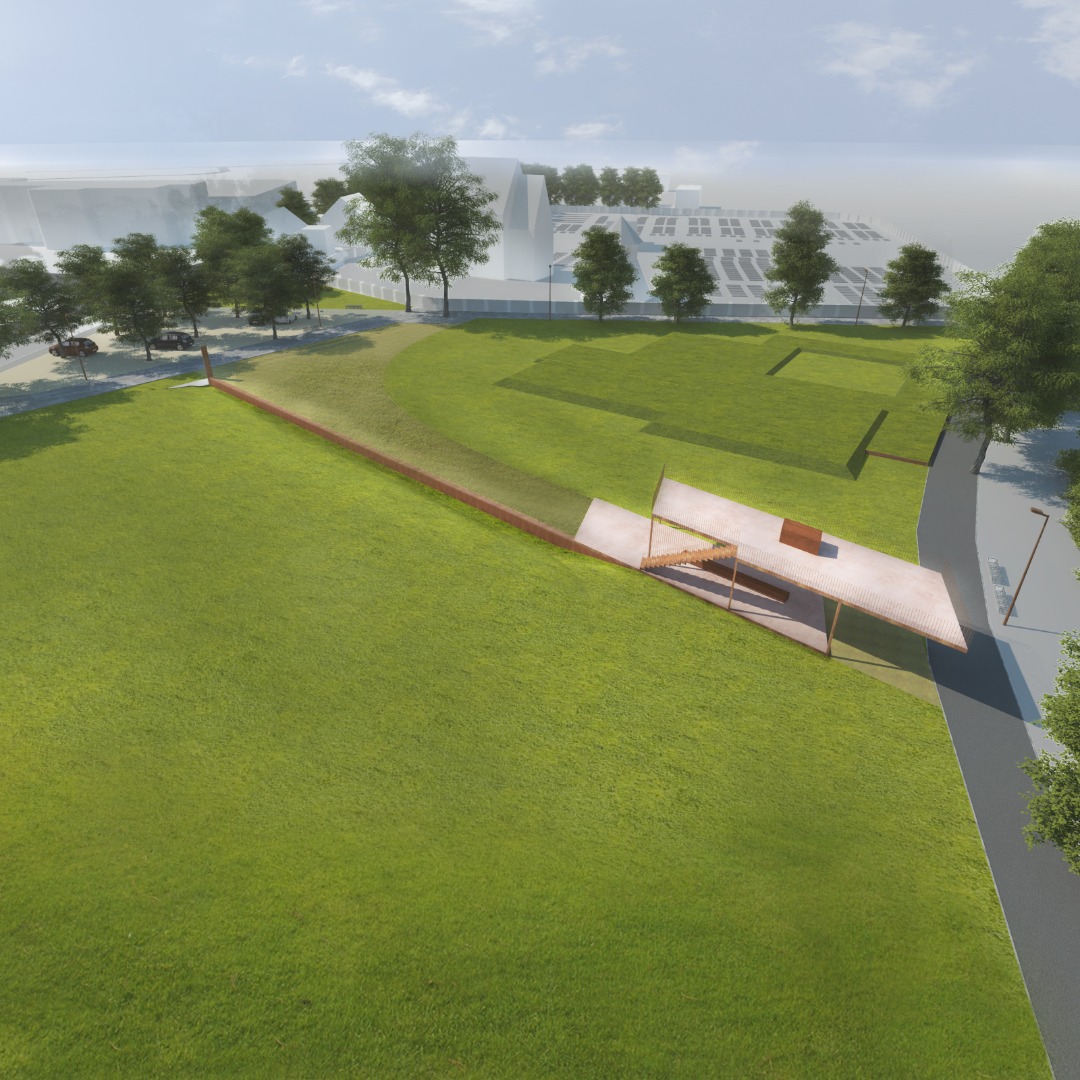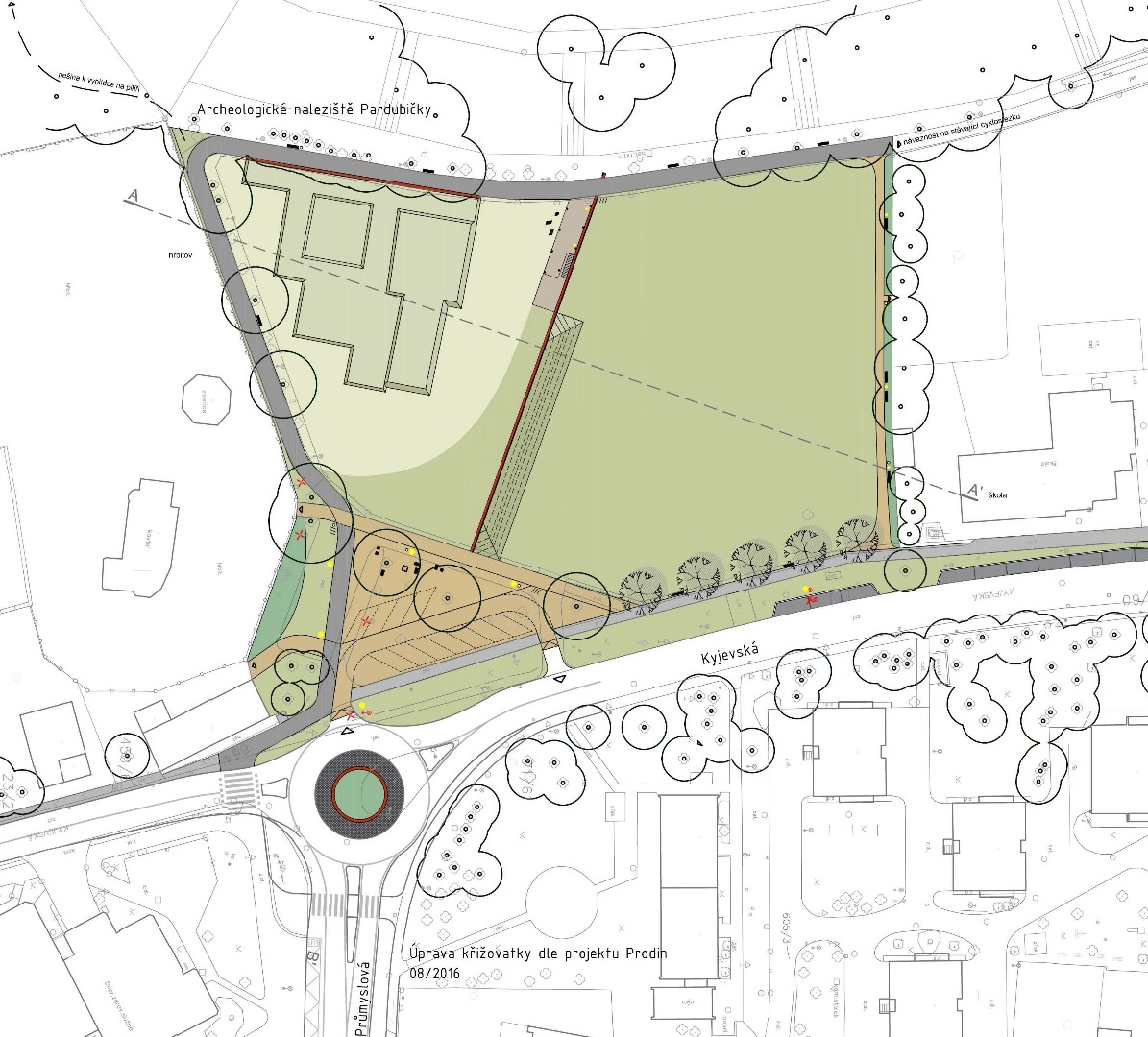 Návrh kombinuje historický odkaz se současným využitím území a zároveň má ambici stát se jedním z hlavních veřejných prostorů Pardubiček. Hlavním tématem návrhu je vztah historického dědictví se současným využitím, resp. zobytněním území a zároveň čitelnost tohoto vztahu. Návrh s touto ideou pracuje především prostřednictvím dvou významově odlišných ploch - aktivní, současnou "pobytovou" a pasivní s historickým odkazem. Podoba návrhu je také zásadním způsobem ovlivňována sousedstvím hřbitova a frekventovanou cyklostezkou, které přinášejí jasné funkční i formální požadavky.