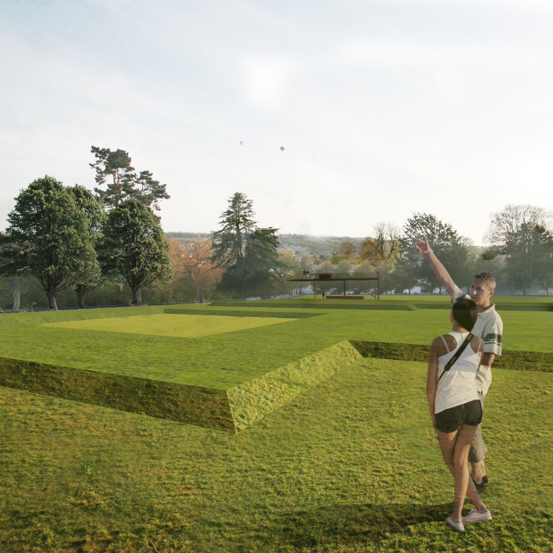 Obě plochy jsou spojeny ústřední linií ha-ha příkopu, která je švem.