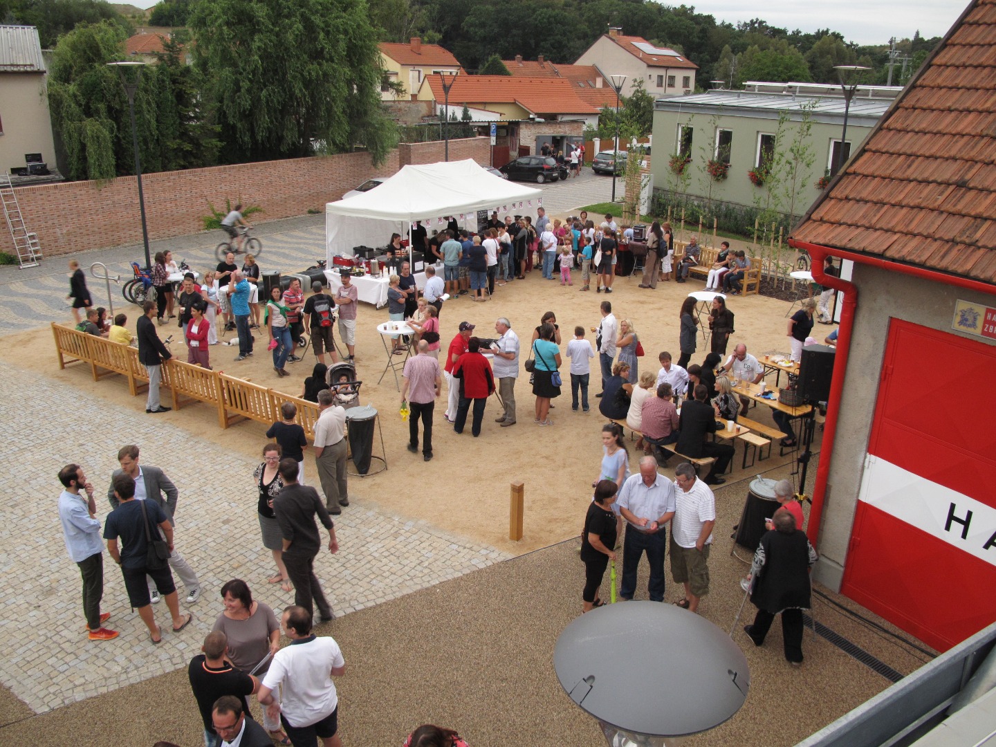 Na začátku pětiletého výtvarného projektu Kateřiny Šedé stál jev, který je vlastní nespočtu malým obcím nacházejících se v blízkosti velkých měst. Většina obyvatel odjíždí ráno za prací, vrací se večer, navzájem se míjejí a nevytváří téměř žádné sousedské vazby. V těchto obcích často také absentuje fungující veřejný prostor, místo setkávání a komunikace. Bedřichovice, malá vesnice u Brna byla typickým příkladem takové obce. Hybatelem změny se stal v roce 2011 projekt umělkyně Kateřiny Šedé, která byla pozvána galerií Tate Modern a s sebou vzala osmdesát místních obyvatel. Po pozitivním přijetí této události mezi veřejností i místními zavedla Kateřina Šedá pro Bedřichovické nový sváteční den (3. září) určený jen pro ně. Kromě společného zážitku začal vznikat také projekt nového veřejného prostoru, který byl slavnostně otevřen vloni na podzim.