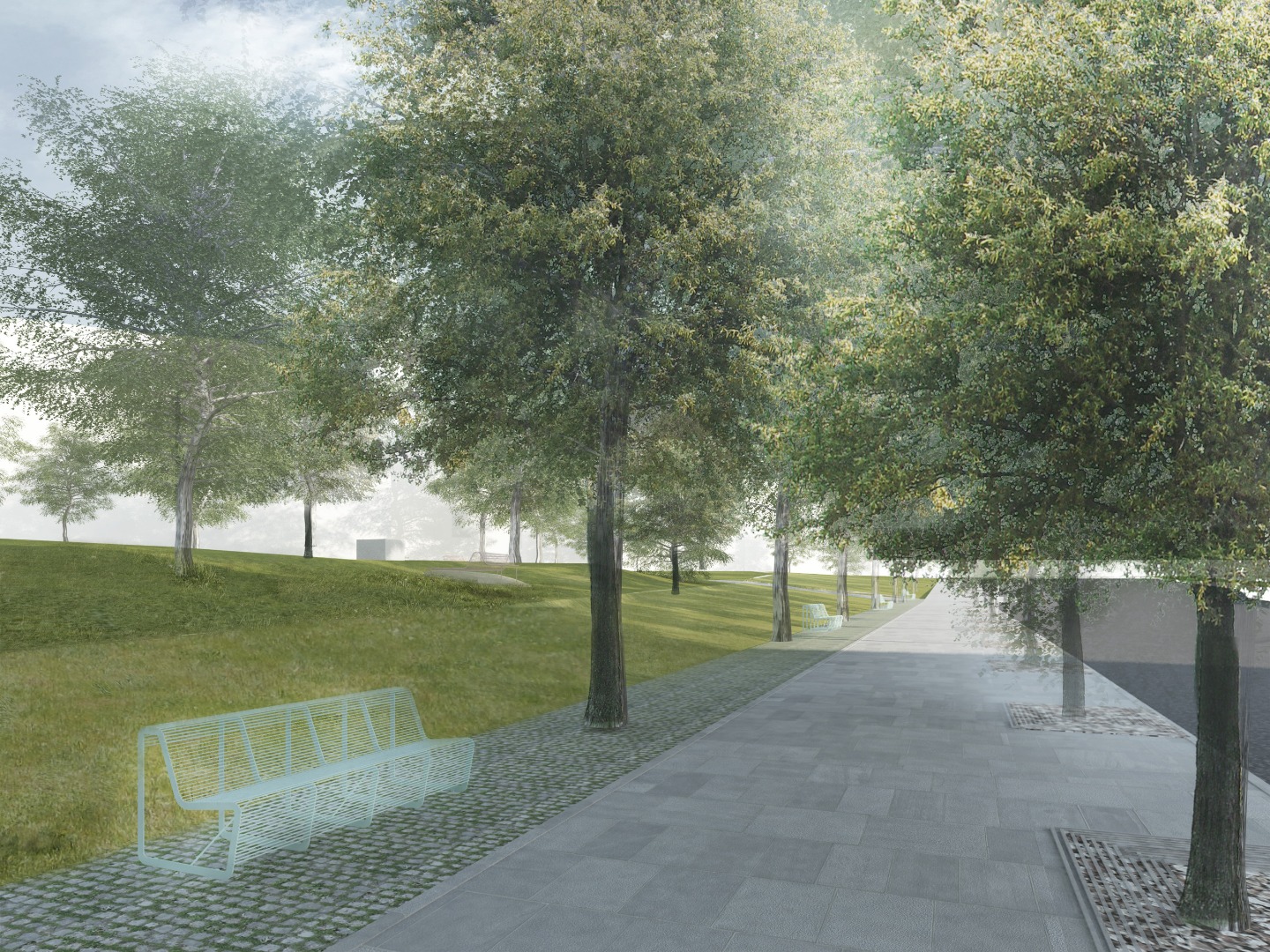 Cílem návrhu je zachování daných významných funkcí parkové plochy a podpory místa jako vyhlídky směrem na městský zelený pás, směrem ke Kolišti.