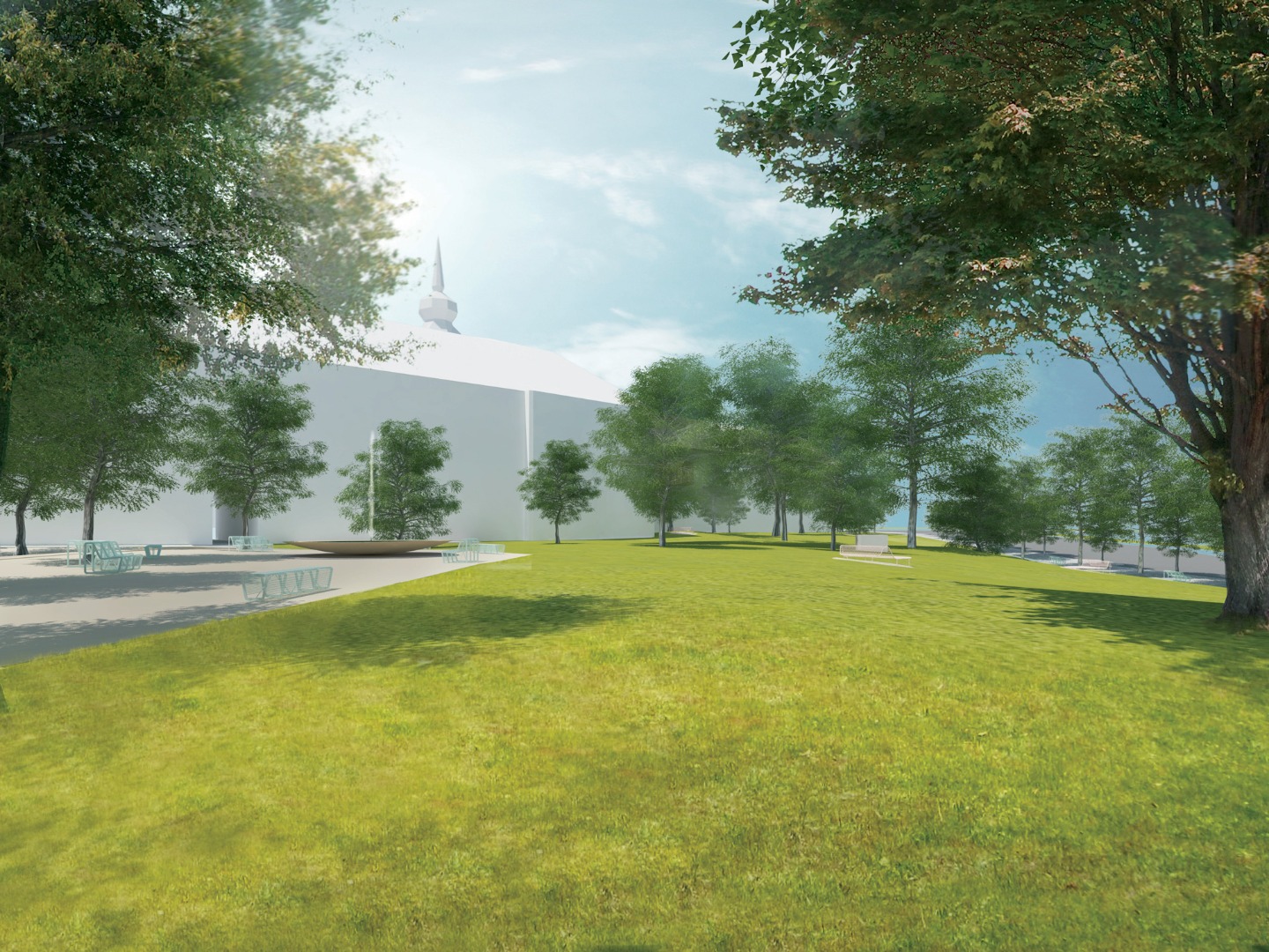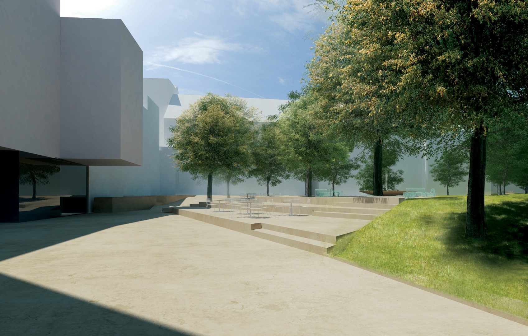 Střízlivé řešení respektuje významnou volnou svažitou polyfunkční parkovou plochu. Hradební návrší s barokním palácem se dostavbami okolních budov a novými objekty na jižní straně snaží integrovat do systému společensky a rekreačně intenzivně využívaného městského centra a rozšířit jeho funkce za hranici zastavěné části. Je umírněnou snahou o integraci „hradebního návrší“ jako polyfunkčního a obohacujícího elementu a zároveň klidovou alternativou k funkcím poskytovaným zastavěným centrem.